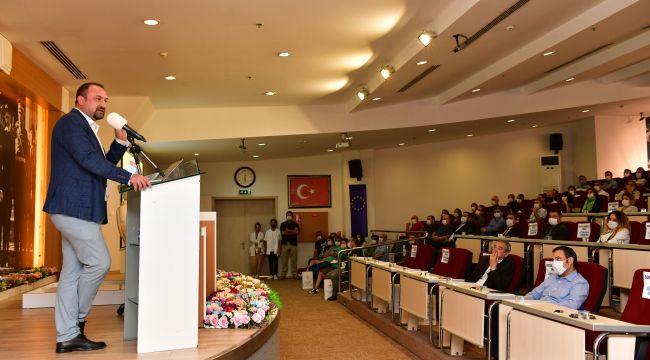 “Bu toplantı bir hesap verme toplantısıdır” diyerek sözlerine başlayan Başkan Utku Gümrükçü, “Bizi buraya getiren siyasi partilerimiz ve muhalefet partisinin temsilcileri ile STK temsilcilerine yaptığımız sunumla 500 günlük hizmetlerimiz ile projelerimizi anlattık. Şimdi de belediyemizin emekçileriyle bir aradayız. Bu bir reklam değil, hesap verme toplantısıdır. Personelden ricam gördükleri eksikleri bize bildirsinler.