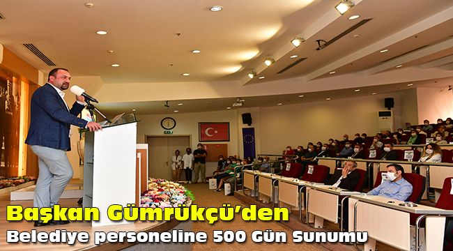 Hizmet ve projelerini belediye personeliyle paylaşan ilk belediye başkanı olan başkan Gümrükçü, covid-19 salgınına karşı her türlü tedbirin alındığı sunumda, kentin marka değerinin yükseltilmesi, kurumsal ve mali yapının güçlendirilmesi, kadın, genç ve engellilere yönelik hizmetler, alt ve üst yapı çalışmaları, pandemi sürecinde hayata geçirilen uygulama ve hizmetler ile projeler hakkında detaylı bilgi verdi.