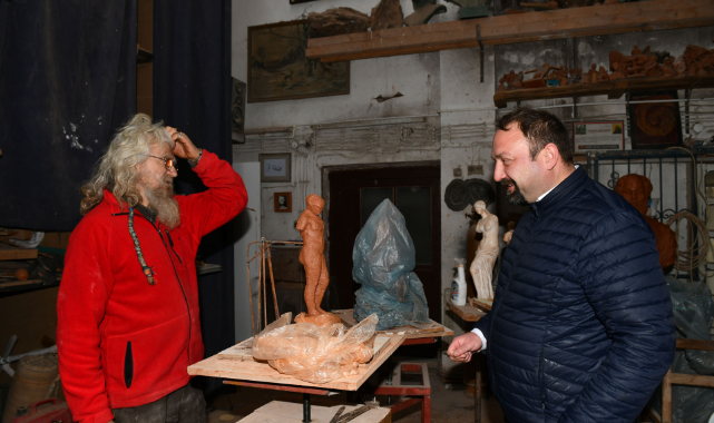 Kültür sanat alanındaki çalışmalarını yeni yılda çeşitlendirerek devam ettireceklerini ifade eden Başkan Utku Gümrükçü, “Kültür ve Sosyal İşler Müdürlüğümüz aracılığıyla her türlü kültürel aktiviteyi Çiğlili hemşehrilerimizle buluşturmak adına gayret ediyoruz. Bunun yanı sıra ülkemizde ve dünyanın çeşitli ülkelerinde örneği bulunan Sanat Köyü Projesini Kaklıç Mahallemizde hayata geçirmek istiyoruz. Sahip olduğu doğal güzellikler ve kent merkezine yakınlığıyla ender bulunan yerleşim yerlerinden olan Kaklıç’ı tarım ve hayvancılık alanlarının yanı sıra kültürel anlamda da bir üretim merkezi haline getirmek amacıyla çalışmalarımızı sürdürüyoruz. Bu doğrultuda, Çiğlimizin önemli sanat üretim merkezlerinden olan Heykeltraş Ekin Erman’ın atölyesinde sanat üreticileri ile bir araya geldik. Kaklıç’ı bir sanat köyü yapma noktasında yeni yılda atacağımız adımlarla ilgili fikir alışverişinde bulunduk. Bu hedefimizi gerçekleştirdiğimizde hem Kaklıçlı hemşehrilerimizin yaşam standardını yukarı çekeceğiz hem de Çiğlimizi kültür sanat anlamında bir cazibe merkezine dönüştüreceğiz” dedi.