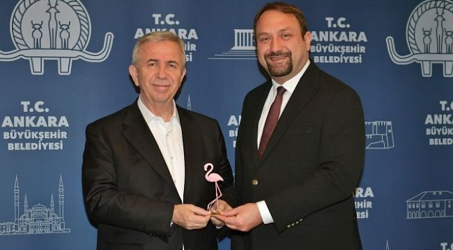 İzmir’in genç belediye başkanlığından Utku Gümrükçü, Ankara Büyükşehir Belediye Başkanı Mansur Yavaş’ı makamında ziyaret etti. Gümrükçü, Yavaş’a Çiğli’nin simgesi olan flamingo kuşunun heykelini hediye etti.