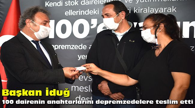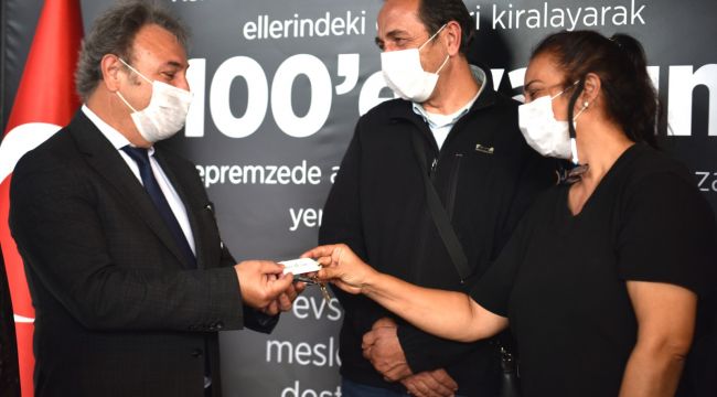 Yürütülen çalışma ile depremin ardından ev ihtiyacı doğan afetzedeler tespit edildi. bornova Belediye Başkanı mustafa İduğ, kampanya kapsamında bağışlanan dairelerden 100’ünün anahtarlarını afetzedelere teslim etti.