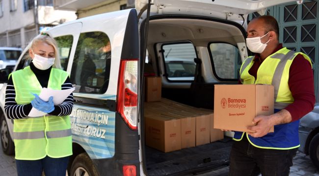 Bornova Belediyesi ekipleri, iki gün sürecek olan sokağa çıkma yasağı boyunca telefon hatlarına ya da sosyal medya hesaplarına gelen her talebi karşılamaya çalışıyor. Salgın nedeniyle sosyal yardımlarını aralıksız sürdüren, çöp toplama hizmetlerini 24 saate çıkartan bornova Belediyesi, 10 Nisan gecesi geç saatlerde ilan edilen sokağa çıkma yasağının ardından tüm ekiplerini ev alışverişini yapamamış ailelerin ihtiyaçlarını karşılamaya yönlendirdi.
