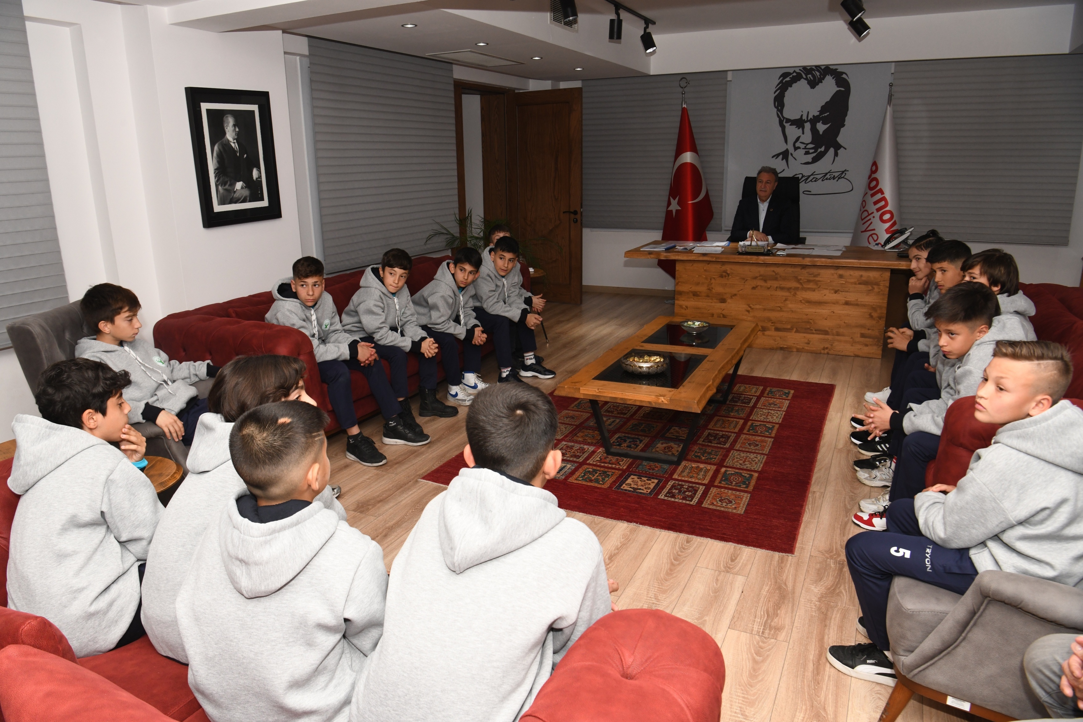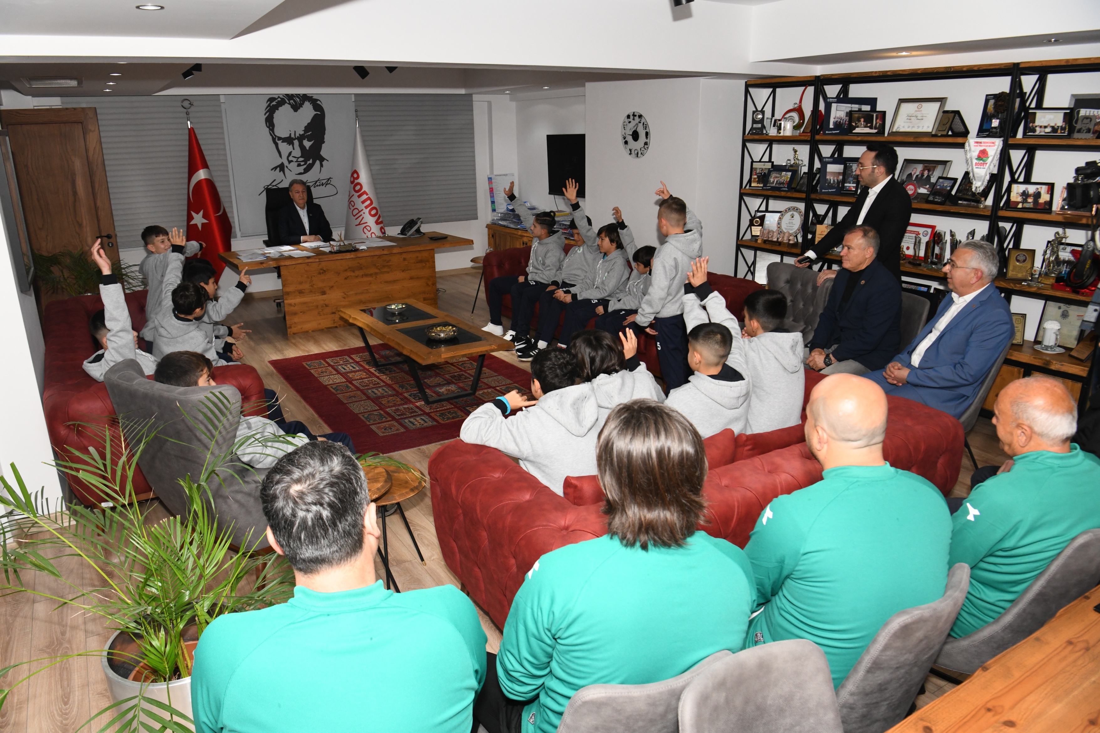 Bornova Belediyespor Kulübü’nün organizasyonunda Bornova’daki 10 amatör kulübün U12 katımlarında mücadele eden sporculardan kurulu Bornova Karması, dünya devleri ile birlikte boy göstereceği turnuva öncesi Bornova Belediye Başkanı Dr. Mustafa İduğ’u ziyaret etti.