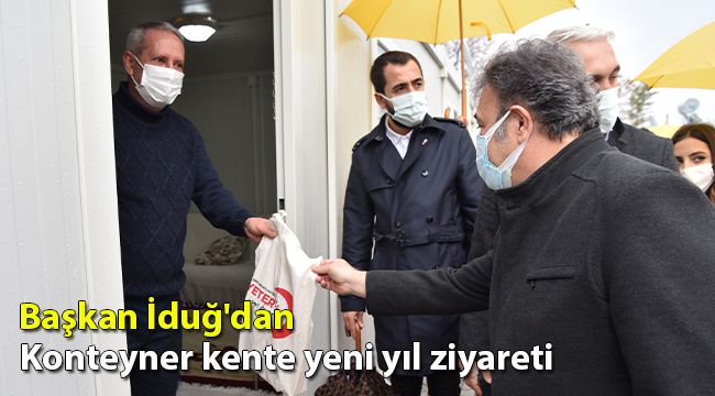 Konteyner kenti Kızılay Bornova Şube Başkanı Cemil Kurkut ile birlikte ziyaret eden Başkan İduğ, kahve, çikolata ve çocuklar için oyuncak dağıttı.