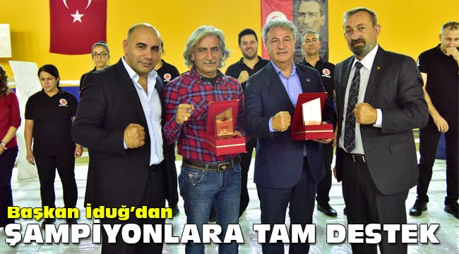 Elde ettikleri derecelerle Türkiye'nin gururu olan sporcular Sevim Ada ile Taylan Leyne, antrenörleri ve Türkiye Muaythai Federasyonu Ege Bölgesi Asbaşkanı Şakir Bayramoğlu ile birlikte Bornova Belediye Başkanı Dr. Mustafa İduğ'u, 29 Ekim Cumhuriyet Kupası'ndan hemen önce ziyaret etti. Başkan İduğ ziyarette, elde ettikleri başarıların mutluluğunu paylaşan sporcuları tebrik ederek, daha çok gencin aynı yoldan ilerleyebilmesi için imkanlar ölçüsünde her türlü desteği vereceklerini söyledi. Başkan İduğ, başarılı gençlerin antrenörlüklerini de yapan Muaythai İzmir İl Temsilcisi Murat Yılmaz ve İl Temsilci Yardımcısı Nuri Karaca'dan ihtiyaç duydukları desteklerle ilgili bir rapor hazırlamalarını istedi.