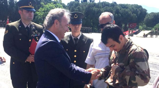 Zihinsel ve bedensel engelleri dolayısı ile askerlik yapamayan engelli vatandaşlar "Temsili Askerlik Uygulaması" kapsamında bir günlüğüne asker olurken, 57. Topçu Tugay Komutanlığı'ndaki terhis töreni heyecanına Bornova Belediye Başkanı Dr. Mustafa İduğ da ortak oldu.