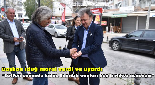 Sokağa çıkmalarına kısıtlama getirilen 65 yaş üstü ve risk grubundaki vatandaşları da birebir uyararak alınan karara uymalarını isteyen Başkan Mustafa İduğ,“Koronavirüse karşı aldığımız önlemler kadar, sakin kalmak ve moralimizi yüksek tutmak da önemli. Sağlığınız için tüm yetkililer olarak görevimiz başında, sizlerin yanındayız. Sıkıntılı günleri hep birlikte aşacağız. Lütfen zorunlu olmadığınız sürece evlerinizden çıkmayın. Her şey bu sıkıntılı süreci sağlıkla ve güvenle atlatabilmemiz için.” dedi