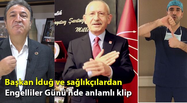 Bornova Belediyesi, Türkiye Sağırlar Federasyonu eski Başkanı Ercüment Tanrıverdi'nin katkılarıyla, 3 Aralık Dünya Engelliler Günü’nde işitme engelliler için anlamlı bir klibe imza attı. Bir yandan engelli vatandaşlarımızın sorunlarına dikkat çekilen klipten diğer yandan da Koronavirüs salgınıyla mücadelede kahramanlaşan sağlıkçılara moral verildi. Klipte Kılıçdaroğlu da yer aldıKlipte, CHP Genel Başkanı Kemal Kılıçdaroğlu, Bornova Belediye Başkanı Mustafa İduğ ve koronavirüs ile mücadele eden kahraman sağlıkçılar birlikte Ayten Alpman’ın “Memleketim” şarkısını işaret diliyle seslendirdi. İş kıyafetleri ve maskeleriyle kamera karşısına geçen sağlık çalışanları, engelli vatandaşlar için farkındalık yarattı. Sosyal medyada yayınlanan klip kısa sürede büyük ilgi görürken, vatandaşlar da sağlık çalışanlarına destek mesajları gönderdi.