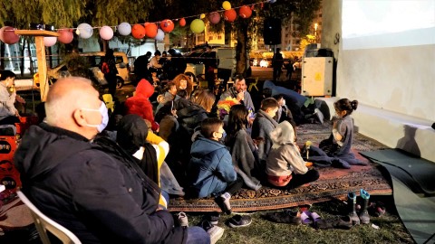 Kemalpaşa belediyesi tarafından çocuklar için kurulan alanda, çocuklarla zaman geçiren, birlikte sinevizyon gösterisi izleyen başkan Karakayalı, vatandaşlarla dertleşerek yanınızdayız mesajı veriyor. Özellikle çocuklarla zaman geçirmenin kendisi için de çok değerli olduğunu ifade eden Başkan Karakayalı, ‘Deprem mağduru çocuklarımız yaşadıkları tramvayı unutabilsinler diye elimizden ne gelirse onlar içi yapmaya çalışıyoruz.