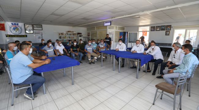 Buca Belediye Başkanı Erhan Kılıç, kurban bayramı dolayısıyla işçisinden bürokratına kadar tüm çalışma arkadaşlarıyla bir araya gelerek bayramlarını kutladı. Başkan yardımcılarıyla birlikte sabahın erken saatlerinde idari binadaki birimleri gezen Başkan Kılıç, pandemi süreci nedeniyle sosyal mesafe kuralları çerçevesinde bayramlaştı. Tüm çalışanlarından bayram süresince virüsten korunma kurallarını azami özen göstermeleri tavsiyesinde bulunan Başkan Kılıç’ın ikinci adresi Temizlik ve Fen İşleri şantiyeleri oldu. İşçiler tarafından coşkuyla karşılanan Kılıç, “Umut ediyorum, bu zorluklardan, bu sıkıntılardan kurtulacağız. Bizleri yine yalnız bırakmayan işçi ve emekçi kardeşlerime teşekkür ediyorum. Bucamız sizlerin emeği ve özverili hizmetleri ile gelişiyor ve güzelleşiyor. Sizler gibi iyi ve donanımlı çalışanlarla görev yapmaktan mutluluk duyuyorum. Sağlıklı, mutlu ve huzurlu bir bayram geçirmenizi diliyorum” diye konuştu.