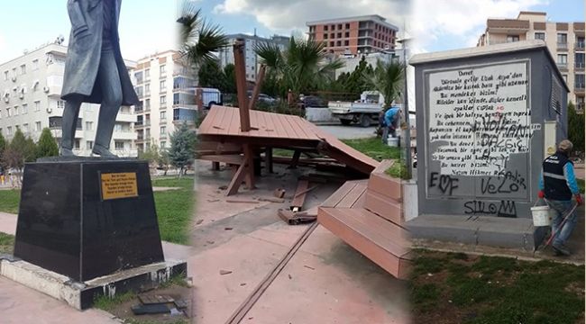 İzmir’in Buca ilçesinde geçtiğimiz günlerde Bekir Coşkun heykeline gerçekleşen saldırının ardından bu kez kimliği belirsiz kişi veya kişiler Nazım Hikmet Parkı’nda bulunan oyun ve oturma gruplarına zarar verdi.BU VANDALLIK BİTSİN ARTIK!Sosyal medya hesabından açıklama yapan Erhan Kılıç;‘’Bu Vandallık bitsin artık! Çocuklarımızın gelişimine destek sunmak için hizmette olan Yenigün Mahallesi Nazım Hikmet Parkı’ndaki oyun ve oturma gruplarına kimliği belirsiz kişi veya kişilerce zarar verildiğini üzülerek öğrendik.