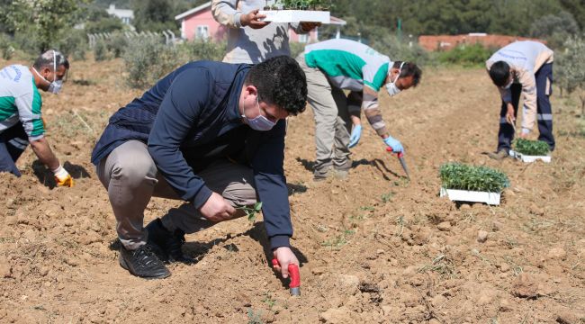 koronavirüs (Covid-19) salgını döneminde önem kazanan gıda güvenliği için harekete geçen Buca Belediyesi, zorlu süreçte tarlaları fidelerle doldurdu.