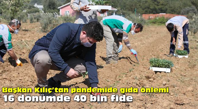 Koronavirüs pandemisinin uzama ihtimaline karşı gıda güvenliği için örnek bir çalışma ortaya koyan Buca Belediyesi, 16 dönümlük arazide 40 bin adet domates, biber, patlıcan ve salatalık fidesi ekti. İlk fidenin ekimini yapan Buca Belediye Başkanı Av. Erhan Kılıç, yaza kadar ürünlerin toplanıp ihtiyaç sahiplerine ücretsiz olarak dağıtılacağını söyledi. Kılıç, “Bu süreci birlikte aşacağız; birlikte üretip birlikte paylaşacağız” dedi.