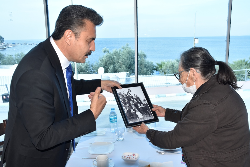 Dikili belediyesi Sosyal Tesislerinde gerçekleşen buluşmada Başkan Kırgöz, öğretmenine anlamlı bir sürpriz de yaptı. Başkan Kırgöz, 45 yıl önce çekilen ve okul arkadaşlarının yer aldığı siyah beyaz bir fotoğraf karesini öğretmenine armağan etti.