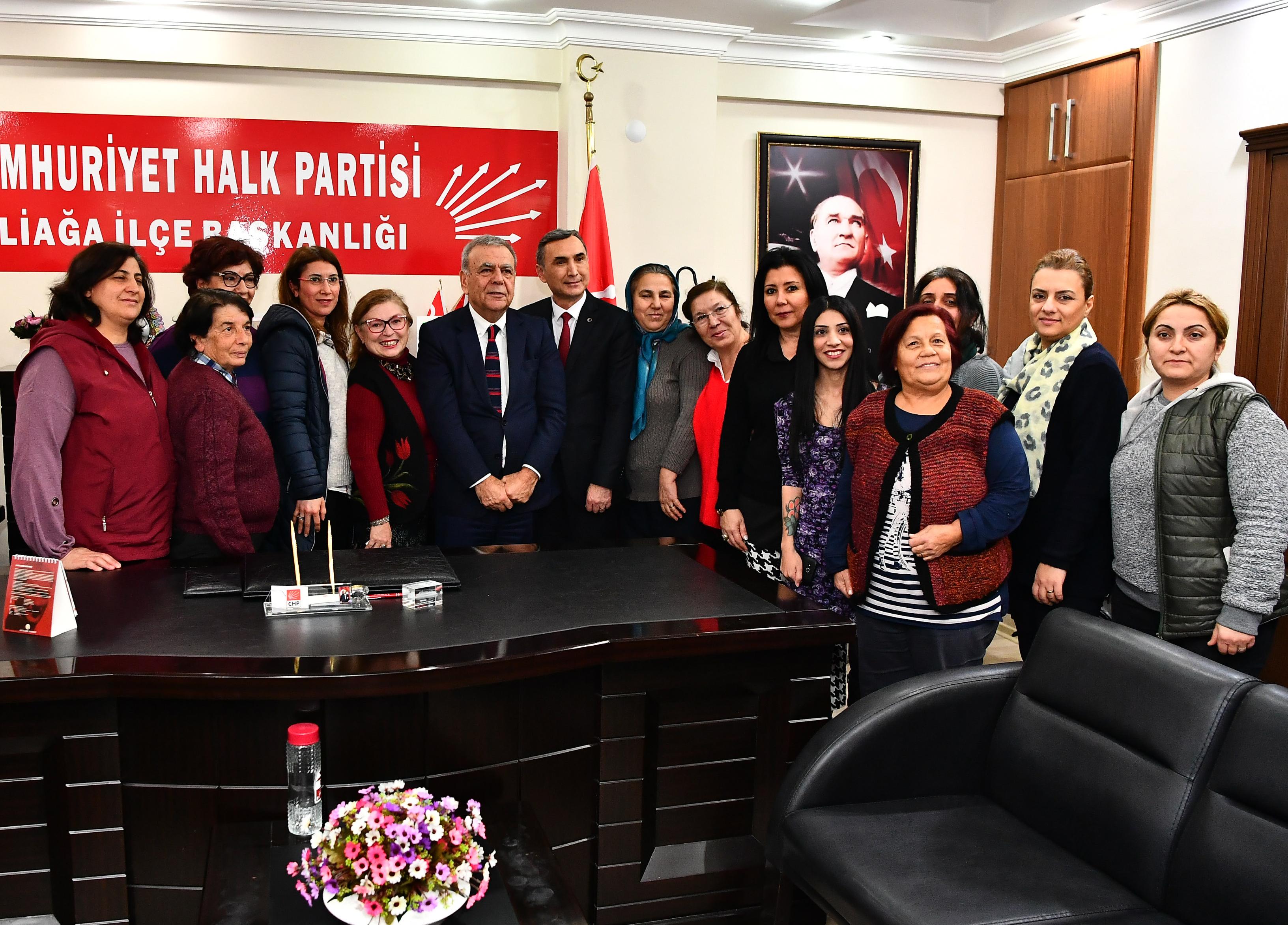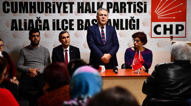 İzmir Büyükşehir Belediye Başkanı Aziz Kocaoğlu, Cumhuriyet Halk Partisi'nin 31 Mart'ta yapılacak yerel seçimler için adayını belirlediği 4 ilçeyi kapsayan ziyaretlerini Kınık'tan sonra Aliağa ile devam ettirdi. chp İlçe başkanlığını ziyaret eden Başkan Kocaoğlu'nu Cumhuriyet Halk Partisi'nin Aliağa Belediye Başkan Adayı Özcan Durmaz ve İlçe Başkanı Gülsen Ustaoğlu Cirit ile gençlik ve kadın kolları üyeleri karşıladı. Başkan Aziz Kocaoğlu, 30 ilçeyi de almak üzere yola çıktıklarını, Aliağa'yı da kazanacaklarına inandığını söyledi.