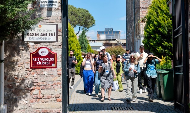 Kültürlerarası İletişim Dersi ve ortak projeleri için İzmir’de bir araya gelen 11 ülkeden 40 üniversiteli genç, Konak Tarih Gezisi’nin ardından Başkan Mutlu’yla buluştu.