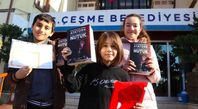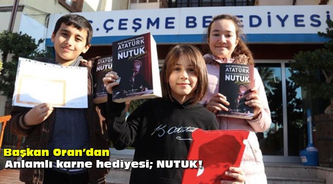Çeşme Belediye Başkanı M. Ekrem Oran karnesini getiren öğrencilere M. Kemal Atatürk’ün “Nutuk” kitabını hediye ederek fark yarattı. başkan Oran, “Nutuk, herkesin okuması, çocuklarına da mutlaka okutması gereken büyük bir miras!” dedi.