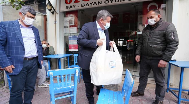 Çeşme Belediye Başkanı M. Ekrem Oran pandemi nedeniyle yaklaşık bir yıldır kapalı olan ve ekonomik zor günler yaşayan kahvehane ve kıraathaneleri ziyaret ederek gıda yardımında bulundu.