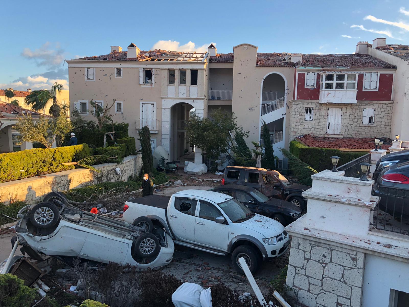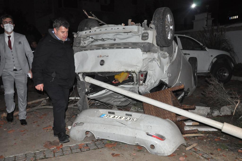 Çeşme’de bu zamana kadar görülmemiş bir hortum felaketi yaşandı. Hortum ve fırtına öyle kuvvetliydi ki Alaçatı’da araçları 10 metre havaya kaldırıp savurdu. Bir vinç işçi barınaklarının üzerine devrildi, 18 kişi yaralandı. 1 kişide açık ayak kırığı var. Yaralanan 18 kişi Çeşme Alper Çizgenakat Devlet Hastanesi’nde tedaviye alındı. Ayağı kırılan bir kişi Dokuz Eylül Üniversitesi’ne sevk edildi. İlçe genelinde farklı marka ve modellerde yaklaşık 15 araç hasar gördü. Marina’da demirli 4 tekne battı. 1 teknede ağır hasar oluştu. Çeşme Belediye Başkanı M. ekrem oran belediyenin tüm ekiplerini seferber etti.