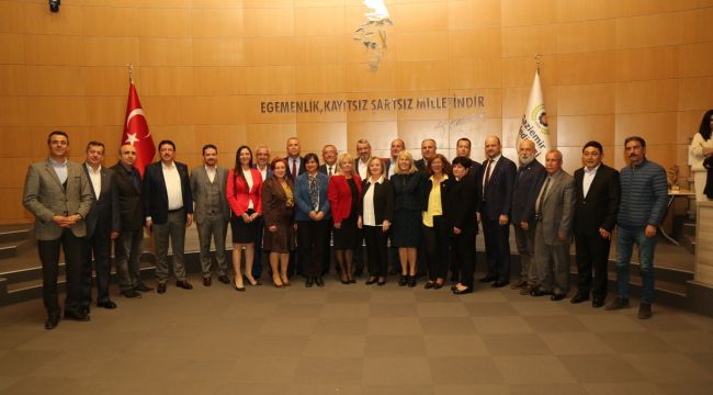 Gaziemir Belediye Başkanı Halil İbrahim Şenol, meclis üyeleri ile son meclis toplantısının ardından, düzenlenen yemekte bir araya geldi. Gaziemir’in gelişmesine katkıda bulunan meclis üyelerine teşekkür eden Başkan Şenol; “Siyasi görüşlerimiz farklı olabilir, bizim dostluklarımızın makamlarla alakası yoktur, ölünceye kadardır. Kiminizle beş yıl, kiminizle on yıl çalıştım. Zaman zaman tansiyonlar yükselse de bunu siyasetin doğası kabul edip, gaziemir için el birliğiyle her zaman en iyisi olsun diye çalıştık” diye konuştu.