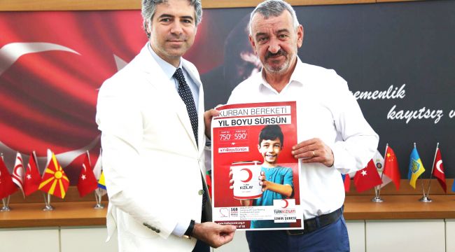 Sosyal belediyecilikte örnek olan Gaziemir Belediye Başkanı Halil İbrahim Şenol kendisini makamında ziyaret eden Türk Kızılayı İzmir Şube Başkanı Kerem Fahri Baykalmış ile birlikte Kurban Bayramı öncesi Gaziemirli vatandaşlara çağrıda bulundu. Başkan Şenol; “Kızılay bir insani yardım hareketidir. Her yıl olduğu gibi bu yıl da kurban etimizi Kızılay ile paylaşacağız. Çünkü Bayram, paylaşmaktır” dedi.