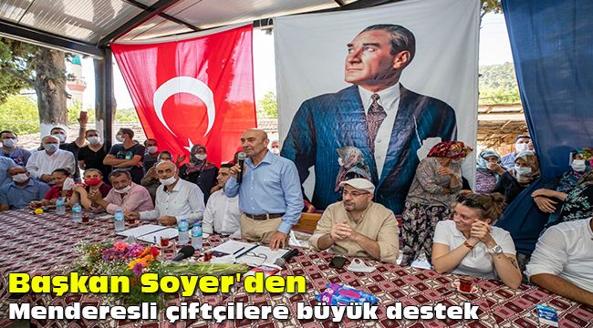 başkan Soyer, menderes programına Değirmendere Tarımsal Kalkınma Kooperatifi'ne ait salatalık serasını gezerek başladı. Kadın üreticilerle birlikte salatalık toplayan Soyer ardından salatalık üretiminde ön sıralarda yer alan Çamönü Köyü'ne geçti. Üreticiler, Soyer'i Çamönü Köyü girişinde salatalık yüklü traktörler üzerinden alkışlayarak karşıladı.
