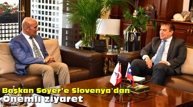 Slovenya Ankara Büyükelçisi Primoz Šeligo, İzmir Büyükşehir Belediye Başkanı Tunç Soyer’i makamında ziyaret etti.Slovenya İzmir Fahri Konsolosu Mazhar İzmiroğlu ve Büyükelçilik Ekonomik İlişkiler Danışmanı Bengü Yüksel’in de katıldığı ziyaret, samimi bir havada gerçekleşti. Soyer, konuklarına İzmir hakkında bilgi verdi. Primoz Šeligo, İzmir’e ilk kez geldiğini belirtti.Slovenya’nın en büyük ticari limanı Koper ile İzmir’in kardeş kent olabileceklerini söyleyen BüyükelçiŠeligo, işbirliği olanaklarının da altını çizdi. BüyükelçiŠeligo bilişim teknolojileri, sağlık turizmi ve kültürel alışverişin önemini vurgulayarak Koper’den özellikle bu alanlarda çalışan bir delegasyonun İzmir’i ziyaret etmesi önerisinde bulundu. Slovenya Dış İşleri Bakanlığı’nca düze nlenen Bled Ekonomi Forumu’na katılım sağlanması konusu da gündeme geldi.