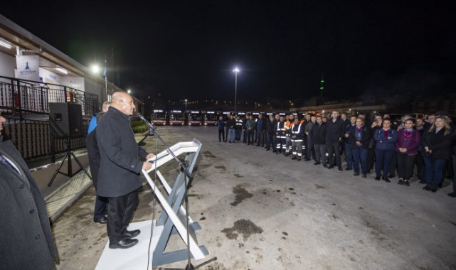 İzmir Büyükşehir Belediye Başkanı Tunç Soyer, 2023’e sayılı günler kala gece gündüz demeden kent ulaşımı için alın teri döken ESHOT emekçilerinin yeni yılını kutladı. Sabah saat 5’te ESHOT’un Adatepe’deki Garajı’na giderek ilk sefere çıkacak ESHOT çalışanlarıyla bir araya gelen Başkan Tunç Soyer’e, İzmir Büyükşehir Belediyesi Genel Sekreteri Barış Karcı, ESHOT Genel Müdürü Erhan Bey ve İzmir Büyükşehir Belediyesi bürokratları eşlik etti.