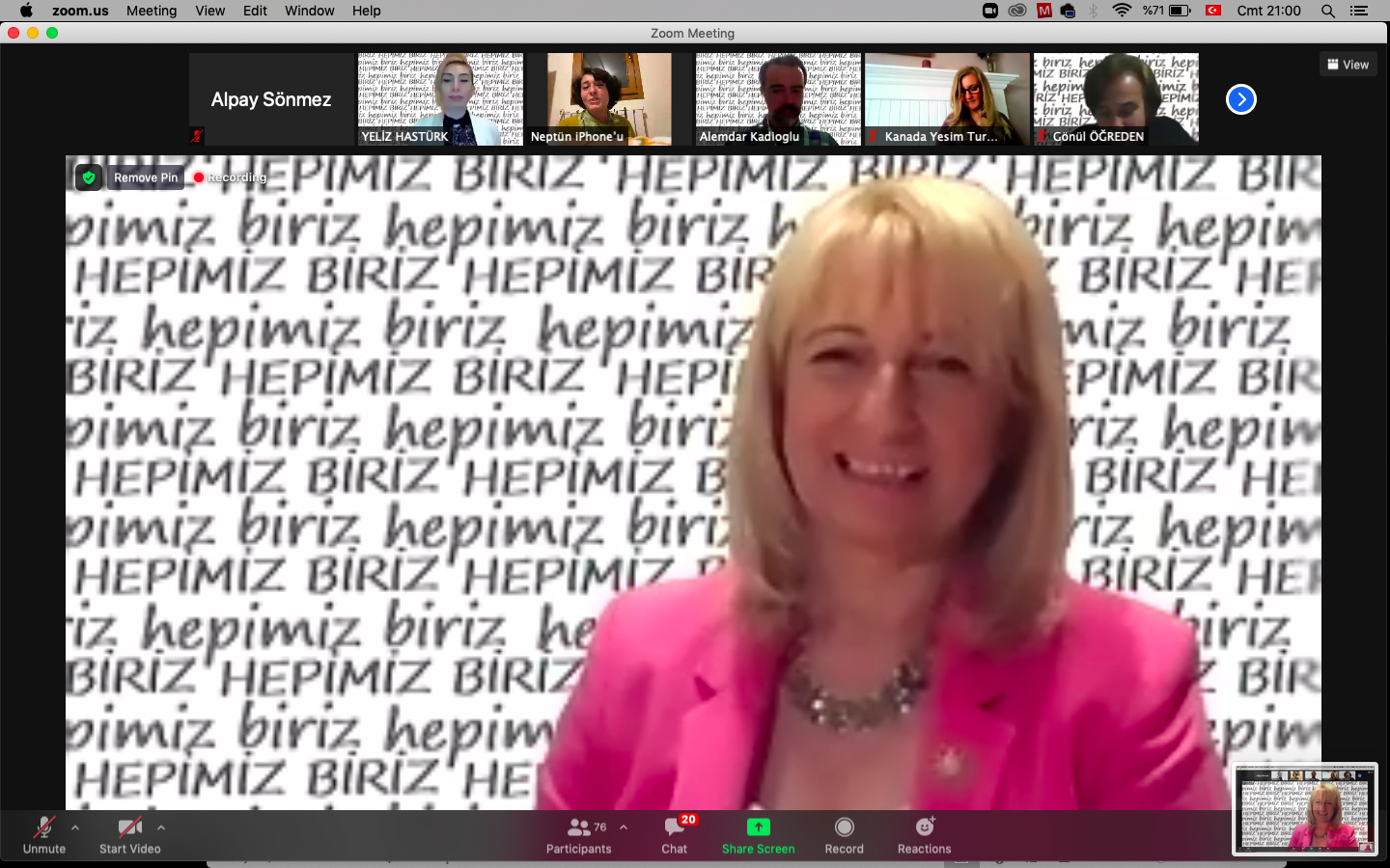 İzmir Köy KOOP Başkanı Neptün Soyer ise kırsaldaki bir kooperatifte kadın olarak başkan olmaktan dolayı gurur duyduğunu söyleyerek, “Ancak o masalarda cinsiyet hiç öne çıkmıyor, üretim konuşuluyor, emek konuşuluyor, gelişim konuşuluyor. Hepimizin ideali olan eşitlik için sanayide, siyasette, kadın erkek birbirimizi destekleyerek el ele bu memleketi ileri götürmek idealindeyiz” dedi. Ancak bugün eşitlikten önce kadına yönelik şiddeti konuşmak durumunda kaldığımızı söyleyen Neptün Soyer, “İstanbul Sözleşmesi’nin tartışmaya açılması da bizi yaralıyor. Kadına yönelik şiddetin bir an önce önlenmesi gerekiyor” dedi. Tarımdaki kadının emeğinin yüzde 46 olduğunu ancak hakkını almaya geldiğinde kadın payının yüzde 20’lere inmesinin büyük bir haksızlık olduğunu vurgulayan Neptün Soyer, “Bu kadın çalışmalarının alanda karşılığını aldığımızda, kadının güçlendiğini gördüğüm zaman çok keyif alıyorum. Bir basamak daha yukarı çıkacağımız 8 Martlar diliyorum” diye konuştu.Açılış konuşmalarının ardından uluslararası Türk kadın kuruluşları temsilcileri kendi dernek ve federasyonlarını tanıttılar, yürüttükleri çalışmalar hakkında bilgi verdiler.