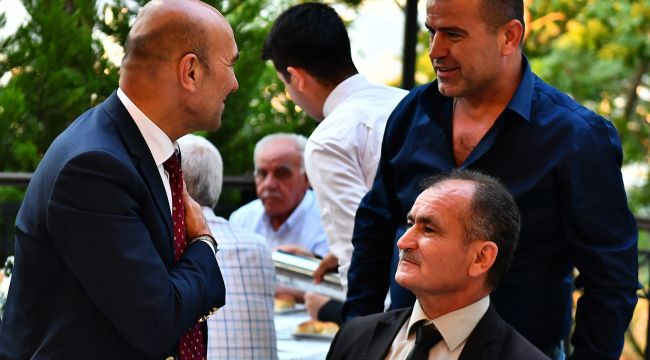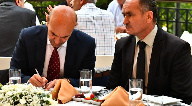 İzmir Büyükşehir Belediye Başkanı Tunç Soyer, yatırım taleplerinin yoğunluğuyla ön plana çıkan mahallelerin muhtarlarını Başkanlık Konutu’ndaki iftarda ağırladı. Buluşmaya Konak, Karabağlar, Bayraklı, Karşıyaka, Çiğli, Buca, Gaziemir ve Bornova ilçelerinden 47 mahalle muhtarı katıldı. İzmir Büyükşehir Belediyesi Genel Sekreteri Dr. Buğra Gökçe, genel sekreter yardımcıları ve belediye bürokratlarının da bulunduğu iftar yemeğinde muhtarların talep ve önerilerini dinleyen, notlar alan Başkan Soyer, belediyeciliğe mobil hizmet anlayışı getireceklerini belirtti.