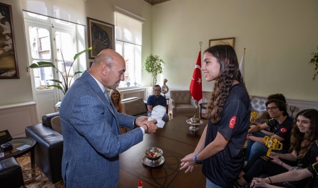 GururlandıkÖzel Çakabey Okulları Bilim Koordinatörü Oğuzhan Köse’yi ve öğrencileri makamında ağırlayan İzmir Büyükşehir Belediye Başkanı Tunç Soyer, öğrencilerin başarılarından duyduğu memnuniyeti dile getirdi. Başkan Soyer, “Muazzam... Tebrik ediyorum. Size helal olsun. Çok gururlandık” derken Öğretmen Köse de verilen desteklerden dolayı teşekkürlerini sundu.
