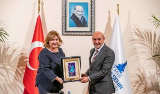 Türkiye turizm Yatırımcıları Derneği Başkanı Oya Narin ile yönetim kurulu üyeleri, İzmir Büyükşehir Belediye Başkanı Tunç Soyer’i ziyaret etti. İş birliği olanaklarının değerlendirildiği ziyarette konuşan Başkan Tunç Soyer, “İzmir, muazzam bir turizm potansiyeline sahip. Bir tarafta Efes, bir tarafta Bergama var. Kozak Yaylası ile tarım ve turizmin birleşmesini sağlayabileceğimiz Ödemiş, Tire var. Daha geçen hafta Dikili’de mağara bulundu. 14 bin yıl öncesine dair kalıntılara rastlandı. İzmir’de dört noktanın UNESCO Dünya Mirası Listesi’ne alınması için çalışma başlattık. Bu dört nokta içinde Gediz de var. Gediz başlı başına bir miras. Çünkü içinde flamingo üreyen dünyada başka bir metropol yok” dedi. İzmir turizminin gelişmesi için sektör temsilcilerine her türlü desteği vereceklerini de dile getiren Soyer, “Bize rehberlik yaptığınız takdirde sonuna kadar katkı veririz” dedi.