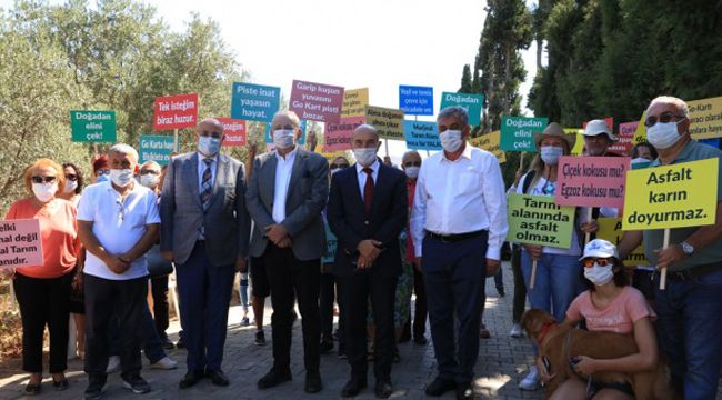Güzelbahçe Belediye Başkanı Mustafa İnce’den konuyla ilgili yerinde bilgi alan Başkan Soyer, “Halkın iradesine, doğayla yaşadığımız uyuma aykırı hareket edenler, rantsal ve ticari girişimler sonunda duvara toslar. İzmir’in hiçbir yerinde izin vermeyiz. İçinde yüzlerce yıllık zeytin ağaçlarının olduğu araziye marjinal tarım arazisi demek haksızlık. Bu yanlışı sürdürmelerine izin vermeyeceğiz. Elimizden geleni yapacağız. Sonuna kadar direneceğiz. Asla müsaade etmeyeceğiz. Sonunda hak ettiği gibi tarım arazisi olarak kalacak. Bizim asli görevimiz korumaktır. Güzelbahçe’nin güzel insanları bu duyarlılığı gösteriyor. Sonuna kadar omuz omuza direneceğiz. Önderliği nedeniyle belediye başkanımızı kutluyorum. Tebrik ediyorum. Yeni dava açacağız. Ne gerekiyorsa yapacağız. Sonuçta bizler seçilmiş belediye başkaları olarak bizim irademize karşı hareket edenlere karşı ciddi bir izin vermeyeceğiz. Hukuku yolları sonuna kadar kullanacağız” dedi.