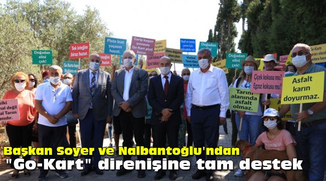 Büyükşehir Belediye Başkanı Tunç Soyer ve CHP PM üyesi Rıfat Nalbantoğlu, Güzelbahçe'de yapılması plankanan Go-Kart pisti için direnişlerini sürdüren Güzelbahçe Belediye Başkanı Mustafa İnce'ye destek vermek için alana gitti. Alanda açıklamalarda bulunan Başkan Soyer: “İzmir’in hiçbir yerinde doğaya karşı yapılanlara izin vermeyiz. Sonuna kadar direneceğiz. Hukuki yolları sonuna kadar kullanacağız” dedi. Öte yandan Başkan İnce projeye AKP Sakarya Milletvekili, Milli motosikletçi Kenan Sofuoğlu'nun destek verdiğini öne sürdü.