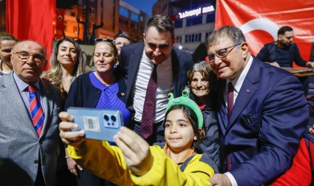 Programda, Aliağalı yurttaşlarla yakından ilgilenen, çocuklarla fotoğraf çektiren Başkan Tugay, 13 yaşındaki Kaan Uçan'ın isteğini kırmayarak, yakasındaki Türk Bayrağı rozetini, hatıra olarak kendisine verdi.