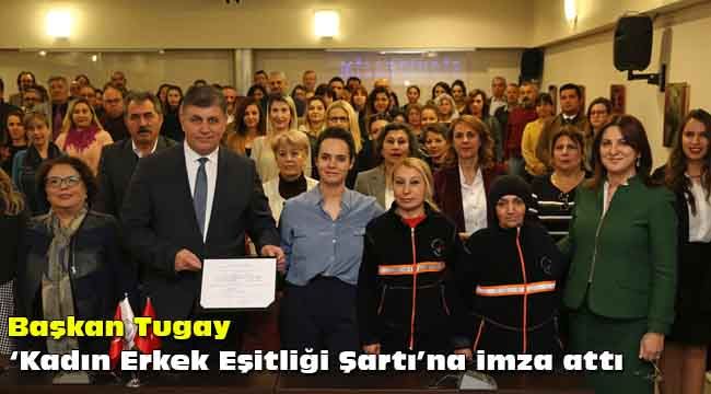Avrupa Yerel Yaşamda Kadın Erkek Eşitliği Şartı’nı imzalayarak, belediye ve kent özelinde eşitlikçi politikalar üretirken, bir yandan da toplumsal farkındalığın artmasına katkı koymayı hedeflediklerini aktaran başkan Tugay, “Karşıyaka Belediyesi olarak, değerli kadınlarımızdan yana gösterdiğimiz duruşu, eylemliliği ve kararlılığı, ‘Avrupa Yerel Yaşamda Kadın Erkek Eşitliği Şartı’na attığımız imza ile bir kere daha ortaya koyuyoruz. Bugün bu imzanın felsefesini Büyük Önderimiz Gazi Mustafa Kemal Atatürk’ün yol göstericiliğinde gerçekleştirilen devrimler oluşturmaktadır. Bu anlayış ve inançla, kendi bünyemizde göstereceğimiz tavrın, hayatın her kesiminde karşılık bulması için çalışacağımıza tekrar söz veriyoruz. Üstlendiğimiz öncü tavrın herkese örnek olmasını diliyorum” dedi.