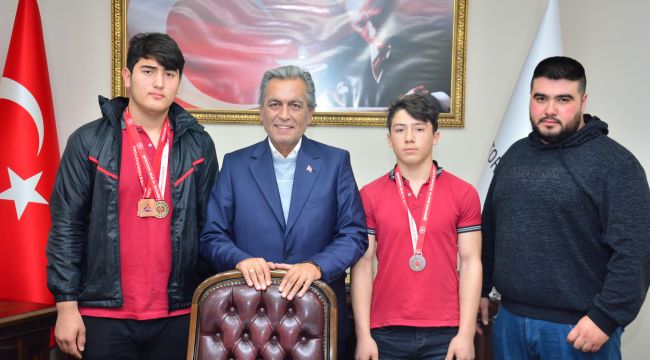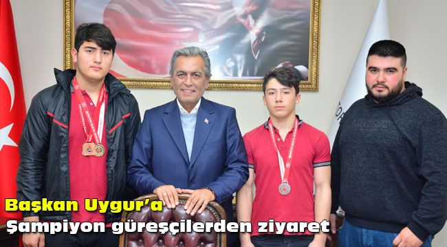 Başkan Uygur'a Şampiyon güreşçilerden ziyaret