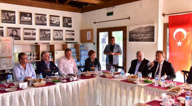 Büyükpark'taki Çınar Kafe'de düzenlenen toplantıya; Bornova Esnaf ve Sanatkarlar Odası Başkanı Mustafa Akkaya, Çamdibi Esnaf ve Sanatkarlar Odası Başkan Vekili Salih Bölük, 2. Sanayi Sitesi Başkanı Erol Çamkıran, 3. Sanayi Sitesi Başkanı Yalçın Dönmez, 4. Sanayi Sitesi Başkanı Ayşe Şöhret, 5. Sanayi Sitesi Başkanı Turgay Avcı, Bornova Şoförler ve Otomobilciler Odası Başkanı Murat Canlı, Kara Nakliyeciler Sitesi Başkanı Adnan Çetin, AYKOOP (S.S. Ayakkabıcılar Toplu İşyeri Yapı Kooperatifi) Müdürü Yunus Taş, Bornova Oto Tamircileri Odası Başkanı Bülent İşçi, Hurdacılar Sitesi Müdürü Cumali Çakıl, MTK Sitesi Müdürü Sebahattin Özusta, Keresteciler Sitesi Başkanı Mehmet Aygün, Geri Dönüşümcüler Sitesi Başkanı İlhami Macit, Ayakkabıcılar Odası Başkanı Yalçın Ata, Dökümcüler Odası Başkanı Muzaffer Üründü, Mİ-KA İş Sitesi Başkan Vekili Muharrem Özer, Bornova Esnaf ve Sanatkarlar Kredi Kefalet Kooperatifi Başkanı Kemal Yaman, Altındağ, Esnaf ve Sanatkarlar Kredi Kefalet Kooperatifi Başkanı Mehmet Semerci, Ayakkabıcılar Odası Başkan Vekili Murat Kayıkcı, Pazarcılar Odası Başkanı Hamdin Erişen ile oda ve sitelerin temsilcileri katıldı.