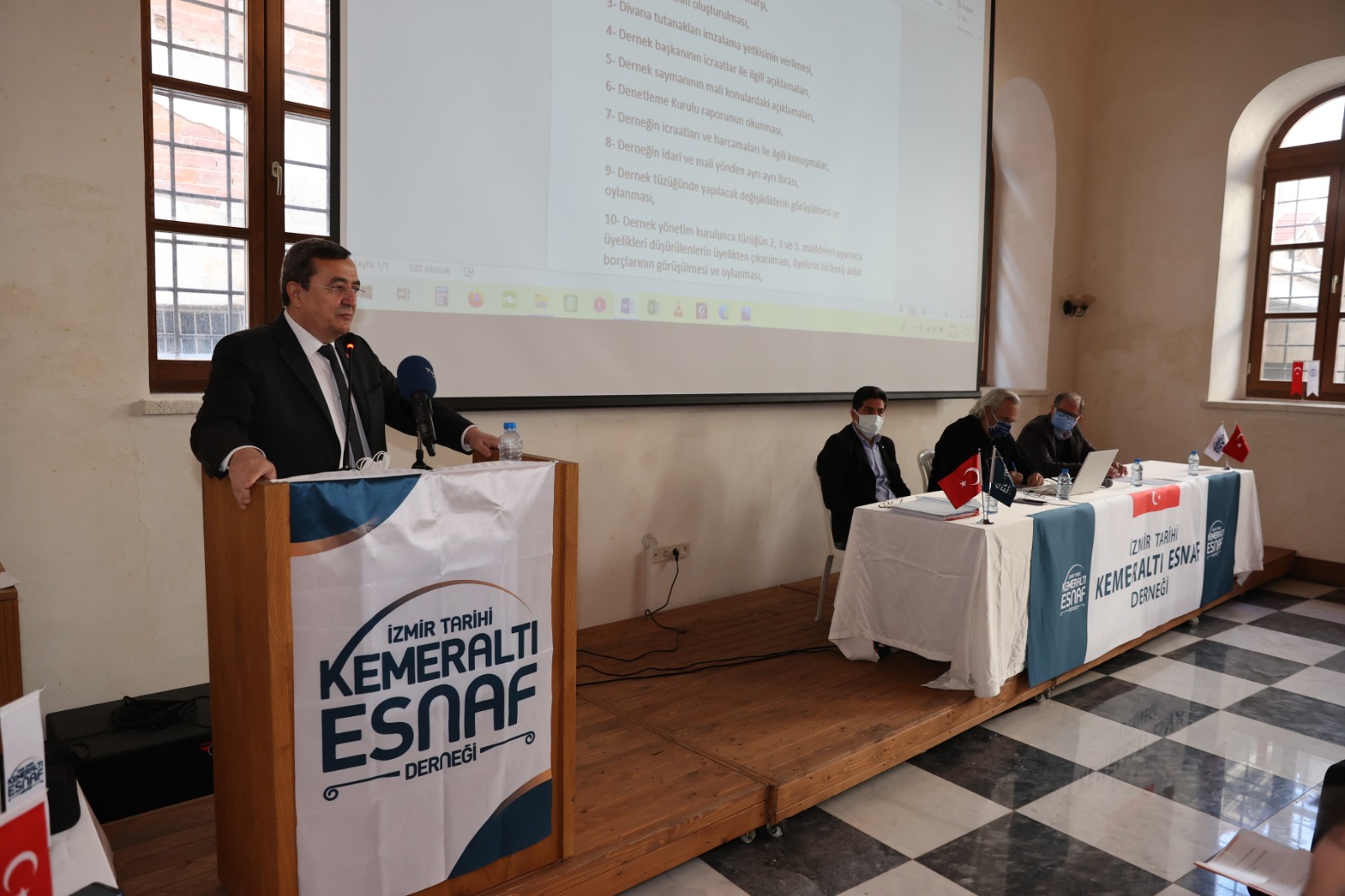 Kemeraltı’nda bulunan EGİAD Sosyal ve Kültürel Etkinlikler Merkezi’nde gerçekleştirilen Tarihi Kemeraltı Esnaf Derneği Olağan Genel Kurulu’nda Semih Girgin yeniden Dernek Başkanı seçilirken; Genel Kurul’a, Konak Belediye Başkanı Abdül Batur, Saadet Partisi İzmir İl Başkanı Mustafa Erduran ile CHP Konak İlçe Başkanı Çağrı Gruşçu da katıldı. Genel Kurul’da konuşan Konak Belediye Başkanı Abdül Batur, “Özellikle yerel yönetimlerle, yerel yönetimlerin birimleriyle tam bir iletişim halinde, Kemeraltı’nın geleceği ile ilgi çalışmaları en iyi şekilde, en iyi iletişimle sağlayan bir başkanımız ve yönetim kurulu var” diyerek Dernek Başkanı Semih Girgin ve yönetim kuruluna özverili çalışmaları nedeniyle teşekkür etti. Batur, Genel Kurul’da güven tazeleyen ve yeniden Dernek Başkanı seçilen Semih Girgin ve Yönetim Kurulu’nu tebrik etti.