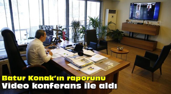 Konak Belediye Başkanı Abdül Batur, tüm dünyayı etkileyen Koronavirüs salgını nedeniyle alınan önlemler kapsamında toplantıları dijitale taşıdı. Batur, belediyenin müdürleri ile video konferansta bir araya geldi.