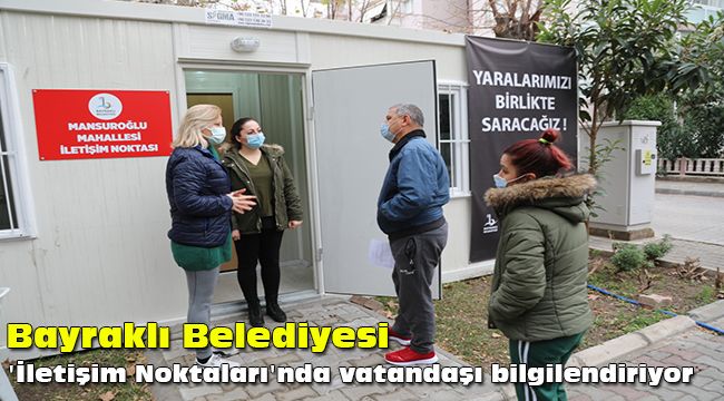 Depremden en çok etkilenen 3 mahallede kurulan Kentsel Dönüşüm İletişim Noktalarıyla ilgili bilgi veren Bayraklı Belediye Başkan Yardımcısı Sibel Elçi ise, “Mansuroğlu, Manavkuyu ve Adalet Mahallelerinde hasar oranları daha yüksekti. Bu bölgede vatandaşlarımızın binalarıyla ilgili, yapılacaklarla ilgili çok fazla sorusu ve talebi vardı. Biz de bundan yola çıkarak, başkanımızın talimatıyla bu 3 mahallemizde geçici konteynerler kurup, teknik arkadaşlarımızı görevlendirerek vatandaşlarımızın sorularını yanıtlıyoruz. Genel olarak bölgedeki imar haklarının neler olacağıyla ilgili bilgi almak istiyorlar. Bu konuda belediyemizce yapılmakta olan çalışmalar hakkında bilgi veriyoruz. Aynı zamanda Sosyal Hizmetler Müdürlüğümüzden de bir personel arkadaşımız, vatandaşlarımızın eşya ve gıda ihtiyaçlarıyla ilgili taleplerini alarak, en kısa sürede kendilerine iletilmesini sağlıyor" diye konuştu.