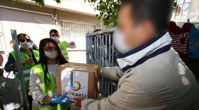 Koronavirüs salgınına karşı ilçede her türlü önlemi alan Bayraklı Belediyesi, geçimini günlük kazançla sağlayan karton ve plastik toplayıcıları ile geliri olmayan, işlerini kaybeden vatandaşları unutmadı. Sokak sokak gezerek, ihtiyaç sahiplerine ulaşan belediye ekipleri, çocuklara çikolata paketi, ailelere de erzak kolisi dağıtıyor.