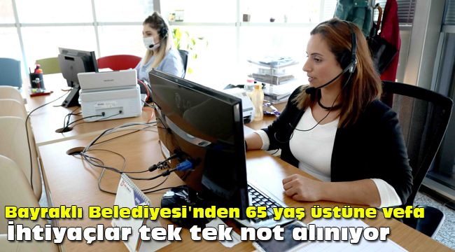 Salgının ilk gününden itibaren ilçede aldığı önlemlerle vatandaşın yanında olan Bayraklı Belediyesi, 65 yaş üstü yurttaşları da yalnız bırakmıyor. İlçedeki 65 yaş üstü tüm yurttaşların isimlerini belirleyen belediye ekipleri, her gün düzenli olarak yurttaşlara telefonla ulaşıyor. Görevliler, hâl hatır sorarak, talep, öneri ve şikayetleri dinleyip, not alıyor. İhtiyaç sahiplerinin taleplerine kısa sürede yanıt veriliyor.