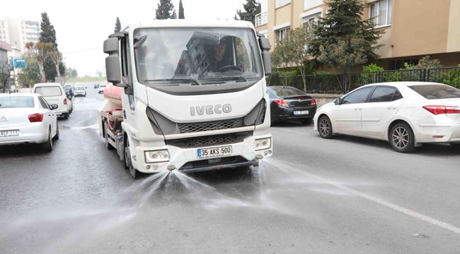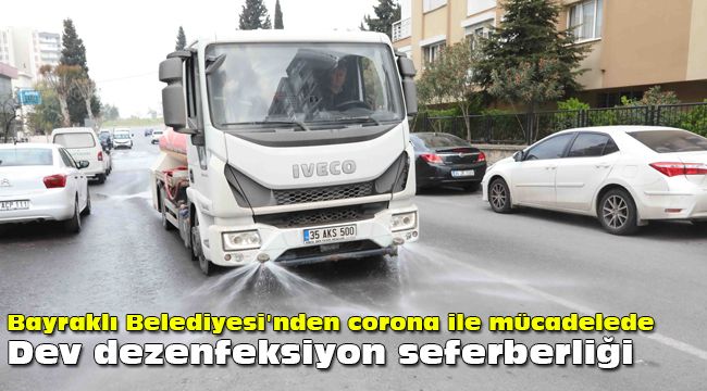 Öte yandan salgınla mücadele kapsamında oluşturulan dev ekiple çalışmalarını sürdüren Bayraklı Belediyesi’nde dezenfeksiyon işlemleri 5 tanker, 4 kamyonet üstü dezenfeksiyon makinesi, 2 su tankı, 29 tulumbalı dezenfeksiyon cihazı ile devam ediyor. 60 kişilik dezenfeksiyon ekibine 360 Temizlik ile Park ve Bahçeler Müdürlüğü personeli, 40 Sosyal Yardım İşleri Müdürlüğü personeli, 40 Zabıta, Sağlık ve Veteriner İşleri Müdürlüklerinden 37 personel ve 14 çağrı merkezi görevlisi eşlik ediyor. Ekipler gün boyu, vatandaşın sorun ve taleplerini dinleyerek, mahallelerdeki cadde ve sokakları, durakları, minibüs ve taksileri, çöp kutularını, eczaneleri, iş yerlerini dezenfekte ediyor.