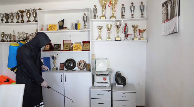 Öte yandan Bayraklı Belediyesi Spor Tesisleri’nde de çalışmalarını sürdüren ekipler, kursların açılmasından önce salgın riskine karşı temasın olabileceği her alanı dezenfekte etti. Görevliler, spor malzemeleri, tribün, tuvalet, soyunma ve malzeme odaları, çamaşırhane, ofisler, çalışma alanları, toplantı salonları, dinlenme alanları, malzeme deposu ve ortak kullanım alanlarını baştan aşağı ilaçladı.