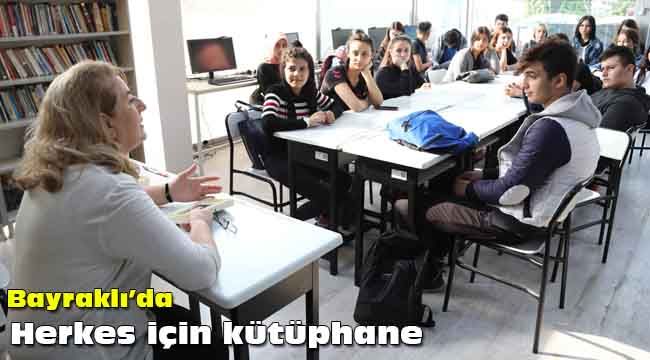 bayraklı Belediyesi kütüphane Müdürlüğü, ilçenin çeşitli noktalarındaki 15 kütüphanede 52 bin kitabı okurlarıyla buluşturuyor. Kütüphanelerde ayrıca ilköğretim ve lise öğrencilerine temel derslerde destek eğitimleri veriliyor. Ziyaretçiler, kütüphanelerdeki bilgisayarlar aracılığıyla internete ücretsiz bağlanarak, elektronik ortamda verilen çeşitli hizmetlerden de yararlanabiliyor.