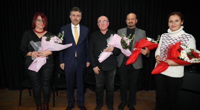 Kimi şairlerin hastalıkla geçen hayatları, kimilerinin çalkantılı aşkları ve siyasi yaşamlarının seyirciye aktarıldığı geceye bayraklı Belediye Başkanı Serdar Sandal da katıldı. Gecenin sonunda Şair Yazar Fergun Özelli, dünyaca ünlü şairimiz Nazım Hikmet’i dinleyicilere anlattı. Etkinlik, piyano eşliğinde Nazım Hikmet’in “Karlı Kayın” adlı eserinin seslendirilmesiyle son buldu.Başkan Serdar Sandal şair yazar Özge Sönmez, Fergun Özelli ve Eşref Karadağ ile moderatör Handan Gökçek’e çiçek ve plaket takdim etti.