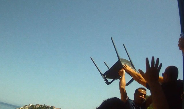 İzmir'in Karaburun ilçesinde, iddialara göre mülkiyeti belediyeye ait olan arsayı izinsiz kullanan bir mekana giden görevliler, demir sopalı, şişeli, sandalyeli saldırıya uğradı. Darp raporu alan belediye personelleri şikayetçi olurken, saldırı anları yaka kamerasına yansıdı.