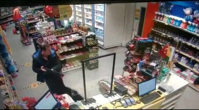 İzmir'in Bornova ilçesinde bulunan bir benzin istasyonunun market bölümünde bir kişi tarafından pompalı tüfekle gerçekleştirilen silahlı soygun anı güvenlik kamerasına yansıdı. Aldığı paralar ile olay sonrası yaya olarak kaçan şüpheli polis ekiplerince yakalandı.