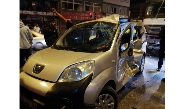 Kaza, saat 22.15 sıralarında Yeşillik Caddesi Gediz Kavşağı'nda meydana geldi. İddiaya göre, Karabağlar istikametinden Gaziemir yönüne gitmekte olan ve kırmızı ışık ihlali yaptığı ileri sürülen Selahattin U. (27) idaresindeki Mercedes marka 33 AGY 908 plakalı beton mikseri, Yeşillik Caddesi yan yoldan Konak istikametine dönmek isteyen İsmail O., yönetimindeki 35 TBA 69 plakalı Peugeot marka hafif ticari araca çarptı. Çevredeki vatandaşların ihbarı üzerine adrese polis, 112 Acil Sağlık ve AKS 110 ekipleri sevk edildi. İhbar üzerine gelen itfaiye ekiplerince hafif ticari araçta sıkışan sürücü İsmail O., ve yolcu konumunda bulunan Fatma E., sıkıştıkları yerden çıkarılarak ambulansa alındı. Hastaneye kaldırılan yaralılardan sürücü İsmail O'nun durumunun ağır olduğu, yolcu konumunda bulunan Fatma E.'nin ise sağlık durumunun iyi olduğu öğrenildi.